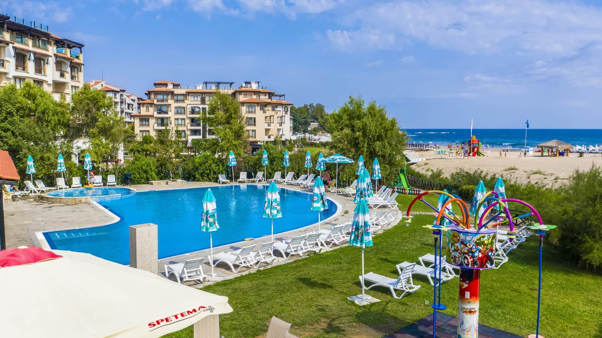 Der Komplex "Oasis del Mare" befindet sich in der ersten Reihe in Lozenets. Das Hotel bietet seinen Gästen einen Außenpool mit Kinderbereich sowie Liegestühle und Sonnenschirme am Pool. In der Anlage gibt es zahlreiche Geschäfte und einen Garten.