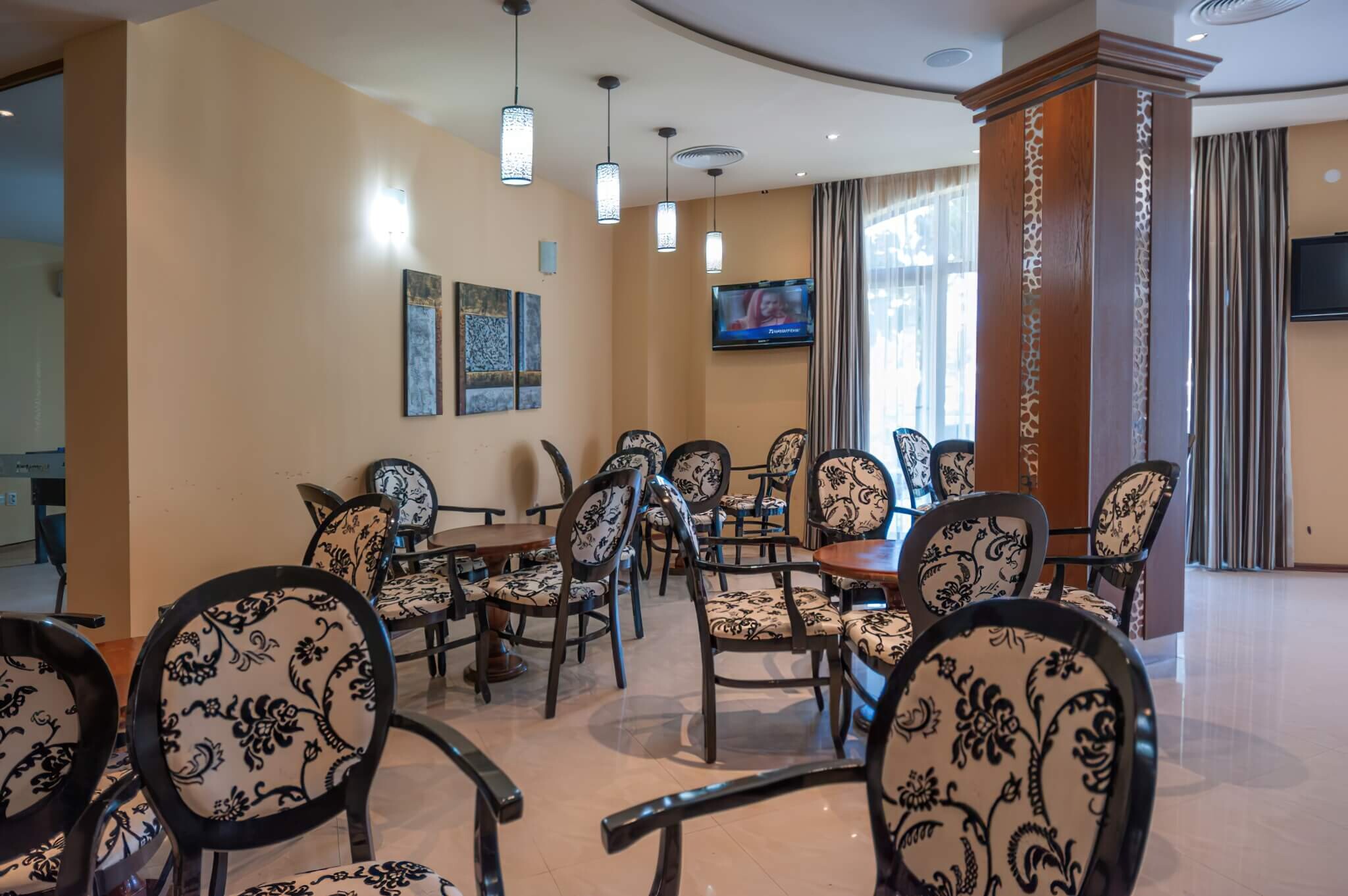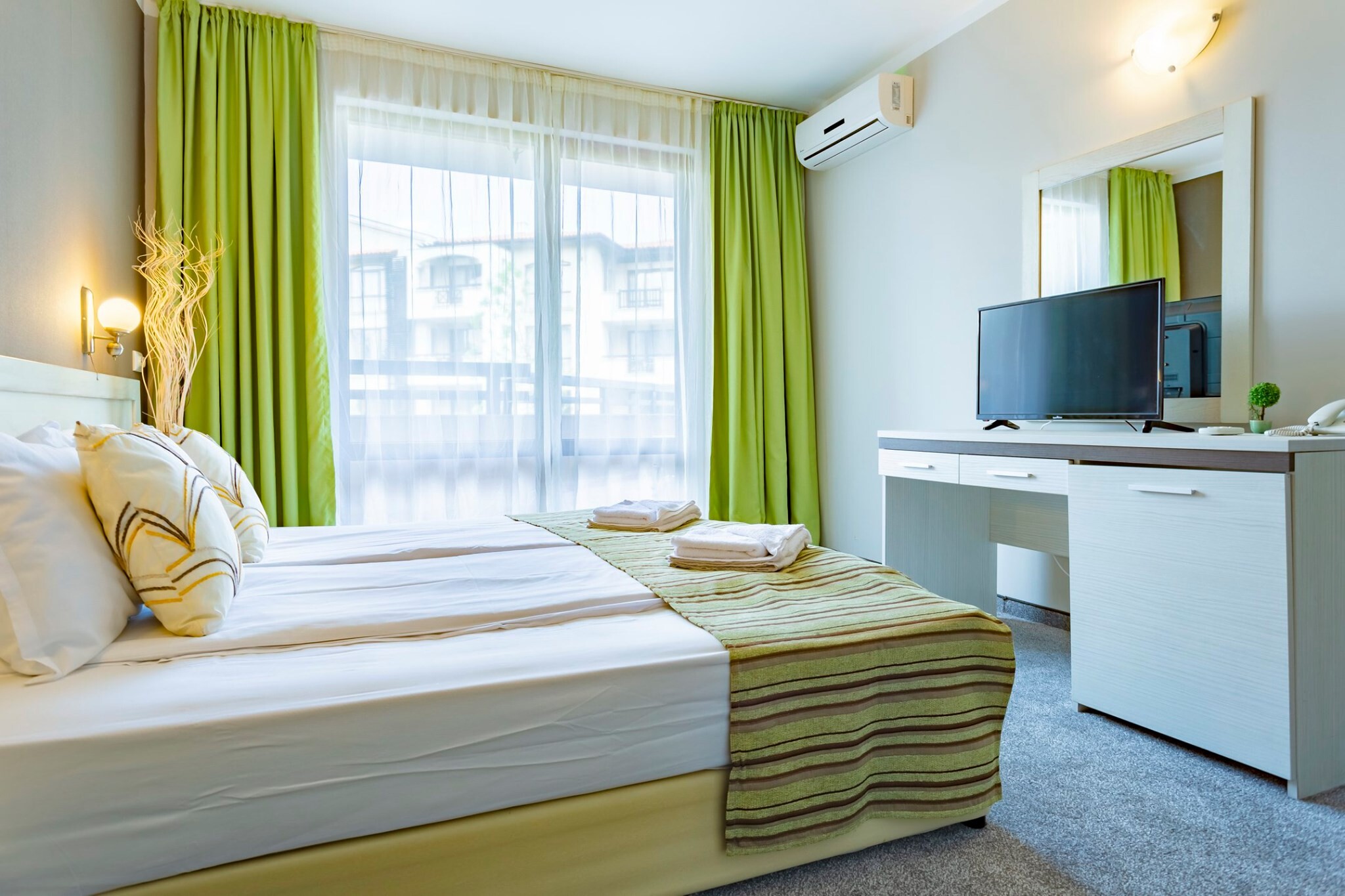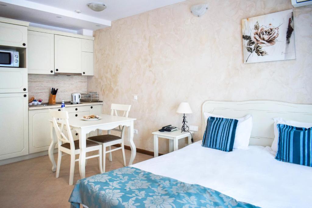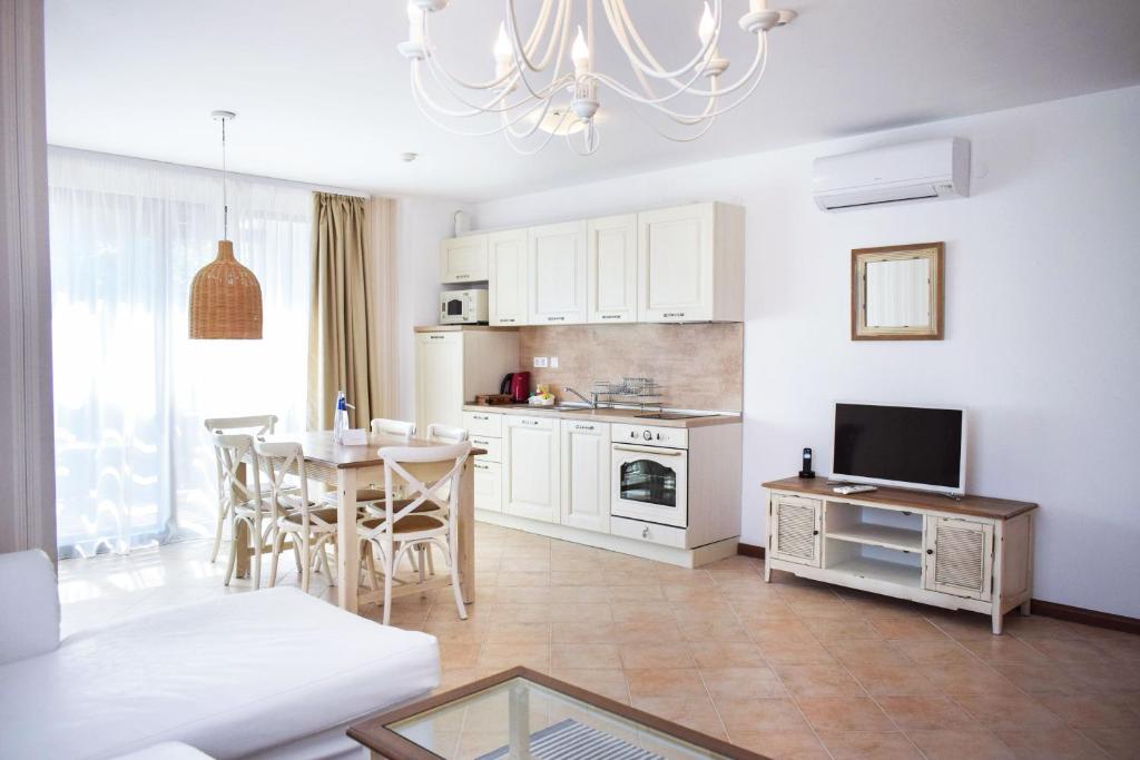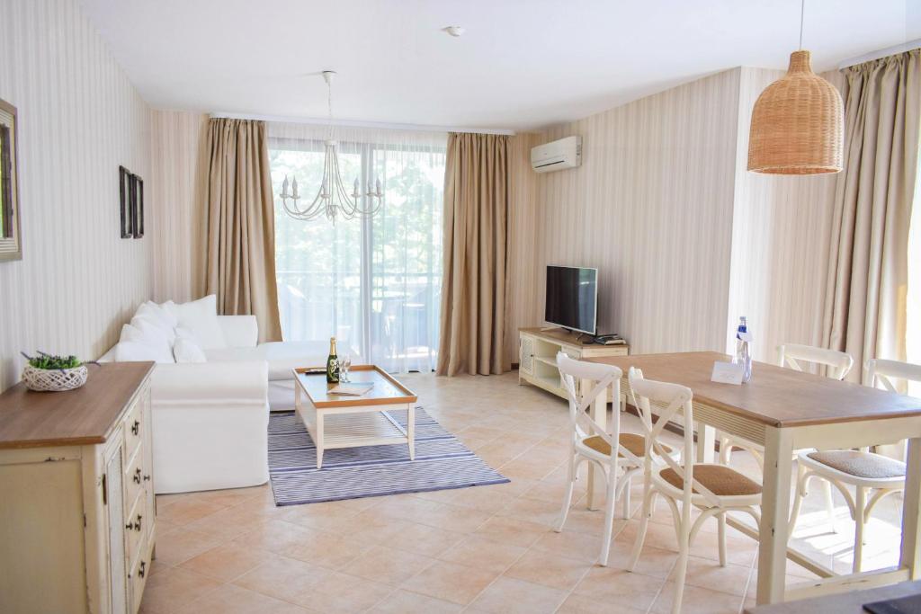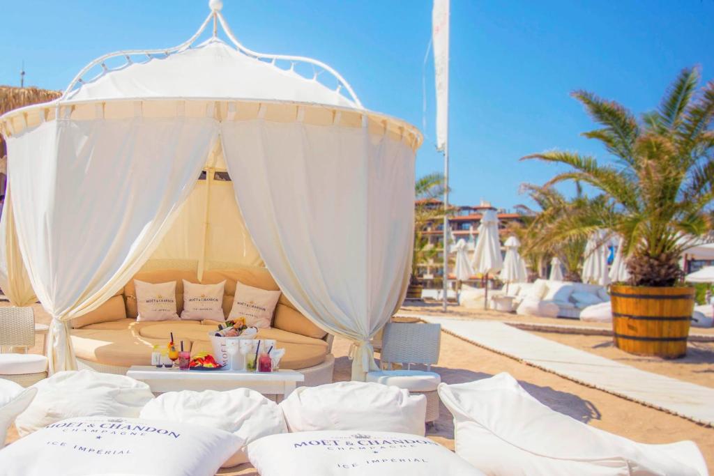 Die Zimmer der Unterkunft sind stilvoll eingerichtet und verfügen über Klimaanlage, Minibar, Kabelfernsehen, Telefon, Bad mit Dusche und Schlafsofa sowie Wi-Fi-Zugang. Die Gäste können im Restaurant des Komplexes mit seinem All-inclusive-Konzept ein umfangreiches Menü genießen und in der Lobbybar entspannen.